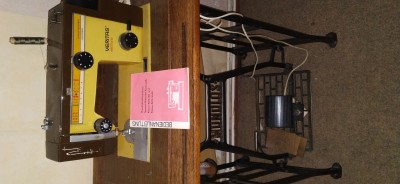 Robuste Ausführung. "Innere Teile" noch aus Metall. Incl. Handbuch, Bedienungsanleitung, Transportbox und Tisch. Funktionsfähig.