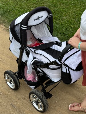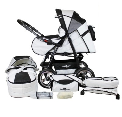 Alles an Zubehör ist dabei - Babywanne, Regenverdeck, Moskitonetz, Fusssack, Softtragetasche mit abnehmbarem Sonnenschutz, Buggybügel, Liegeverlängerung, Wickeltasche, Einkaufskorb.