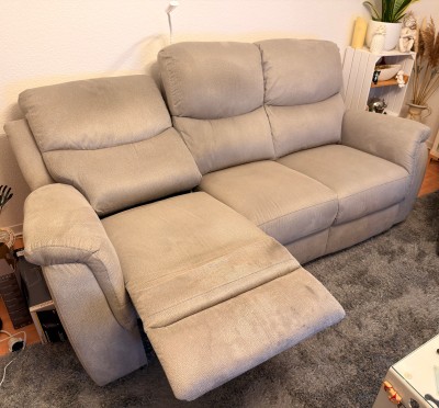 Die Couch kann man an der linken Seite ausziehen siehe Bilder .