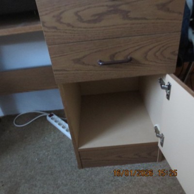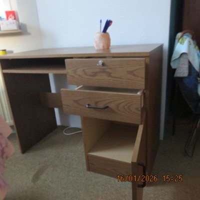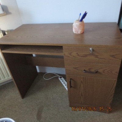Schreibtisch mit einem verschließbaren Fach zu verschenken