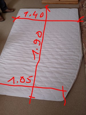 Topper für Wohnwagen-Doppelbett, Maße siehe Bild 1, ca. 5 cm stark, ca. 3 Jahre nicht gebraucht wegen Bettänderung, leichte Gebrauchsspuren für 5,00€ abzuholen,