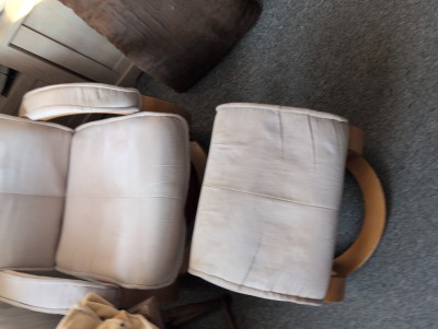 Stühle mit heller gepolsterter Sitzfläche. 50 €.