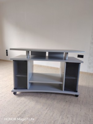 2 Jahre alt, mit 3 Glasablagen &3 Schubfächern, sowie 2 Kabelführungen, aus Holz und MDF, Traglast bis 40 kg,