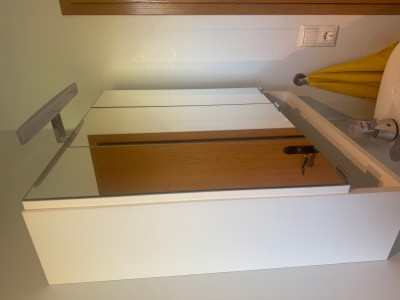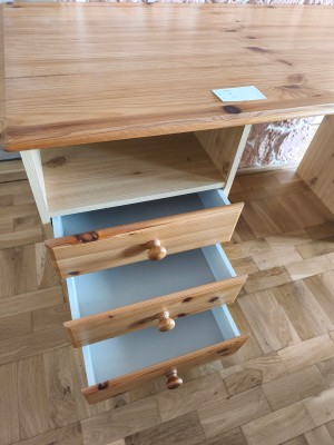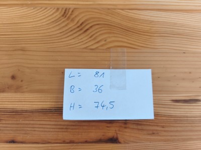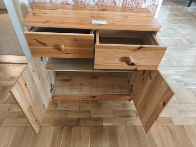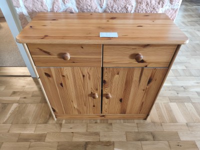 Ich biete einen Kiefernschrank in den Maßen LxBxH 81x36x74,5 cm zum Verkauf an. Er hat 2 Schubladen und 1 Einlegboden.
