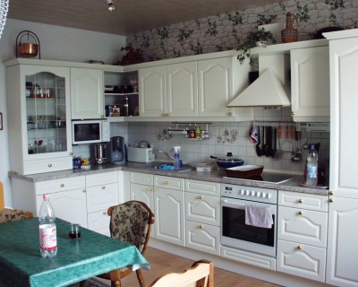 Die Küchenteile stehen bereits abgebaut in unserer Garage, eine neue Arbeitsplatte ist notwendig. Dazu gehörig ist ein funktionsfähiger Einbau-Kühlschrank.