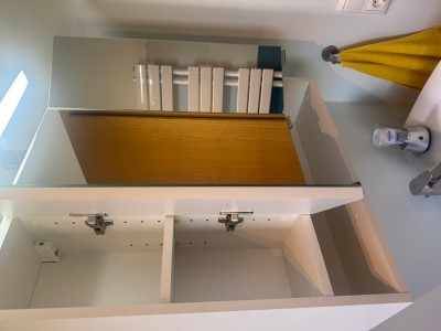 Ich biete hier einen Spiegelschrank B/H/T in cm ca. 65/70/18 in weiß mit drei Türen und Einlegeböden zum Verkauf für 150,00 Euro an. Neupreis 164,99 Euro am 11.03.2026, Rechnung vorhanden.