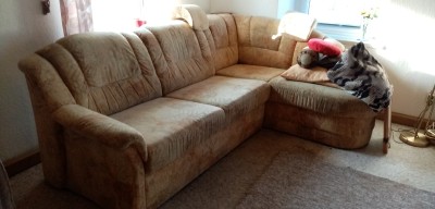 Falls Bedarf besteht, kann ein 3 Sitzer 205 x 80 mitgenommen werden. Die Sitzfläche hat allerdings starke Gebrauchsspuren.