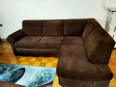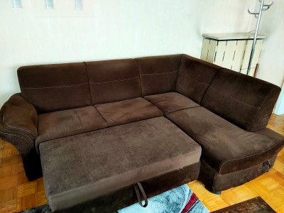 Ecksofa mit Schlaffunktion und Stauraum und Hocker, Stellmaß 1,70x2,40, Abholung, kostenlos abzugeben