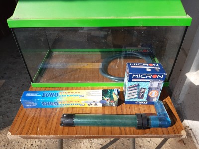 Komplett; Abdeckung mit Futterklappe und Beleuchtung, Filterbox mit Pumpe, Heizung,