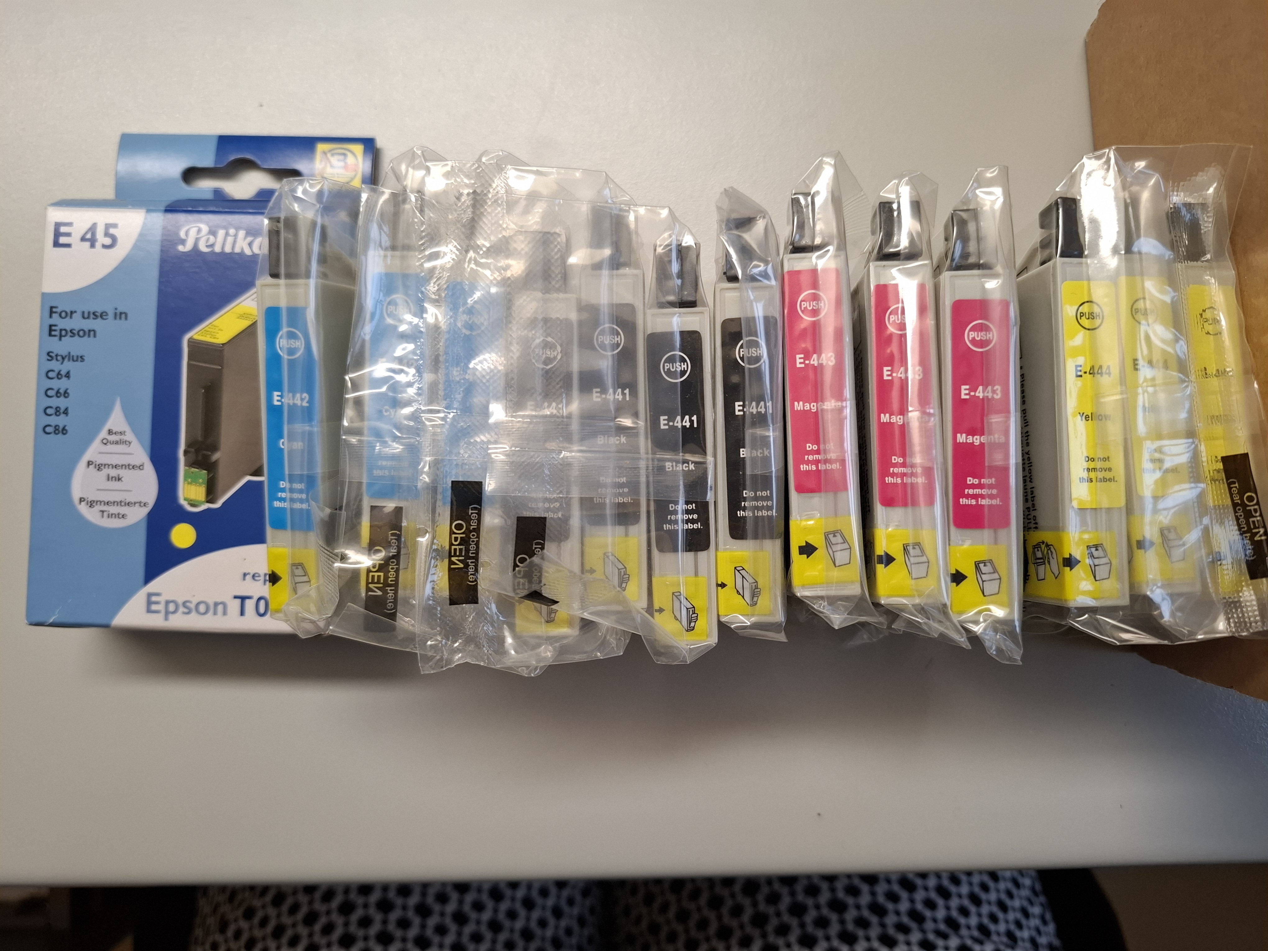 Die Druckerpatronen sind original verpackt.