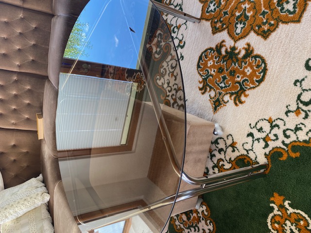 Der Tisch ist sehr gut erhalten, das Glas hat keine Kratzer