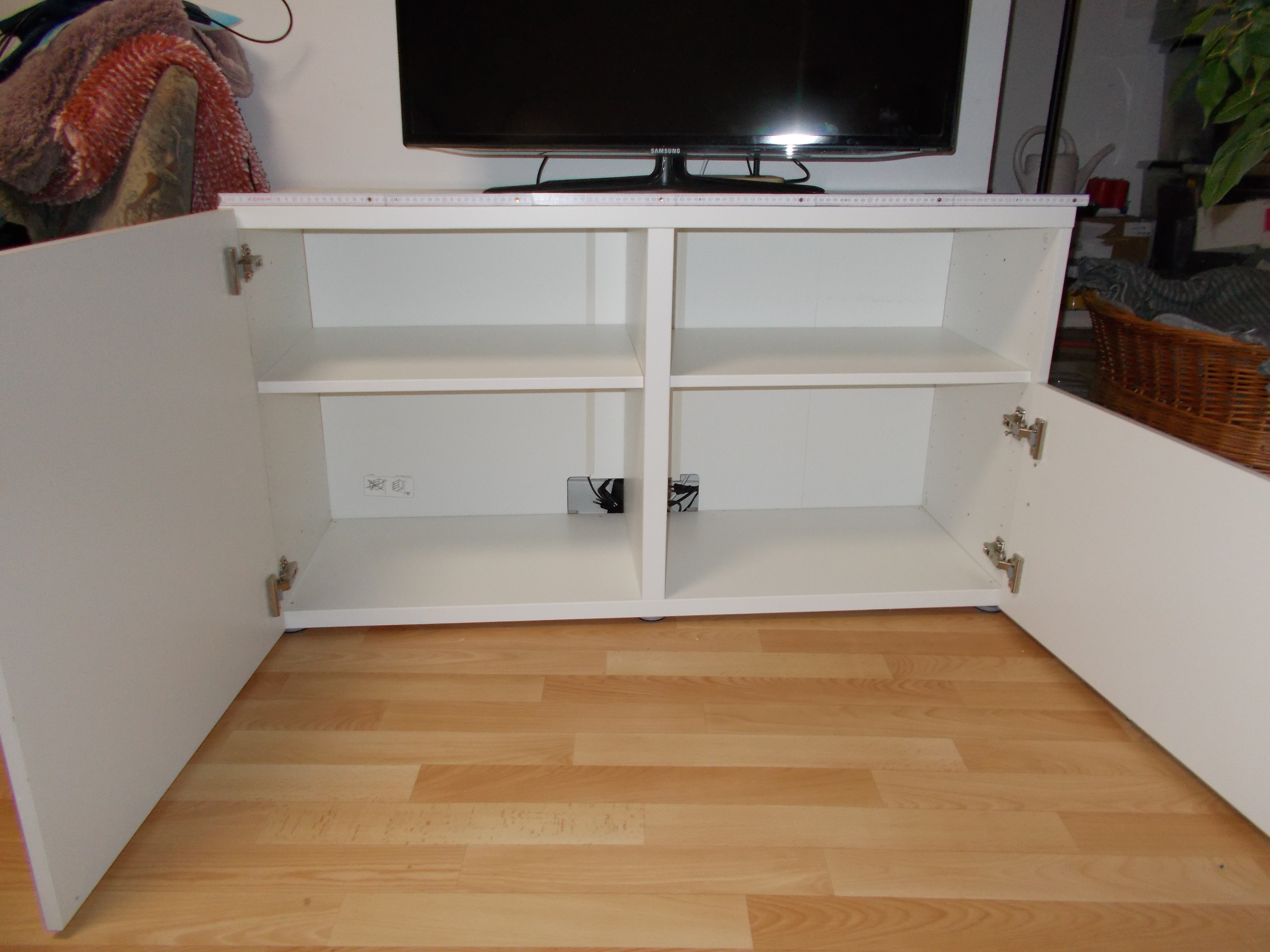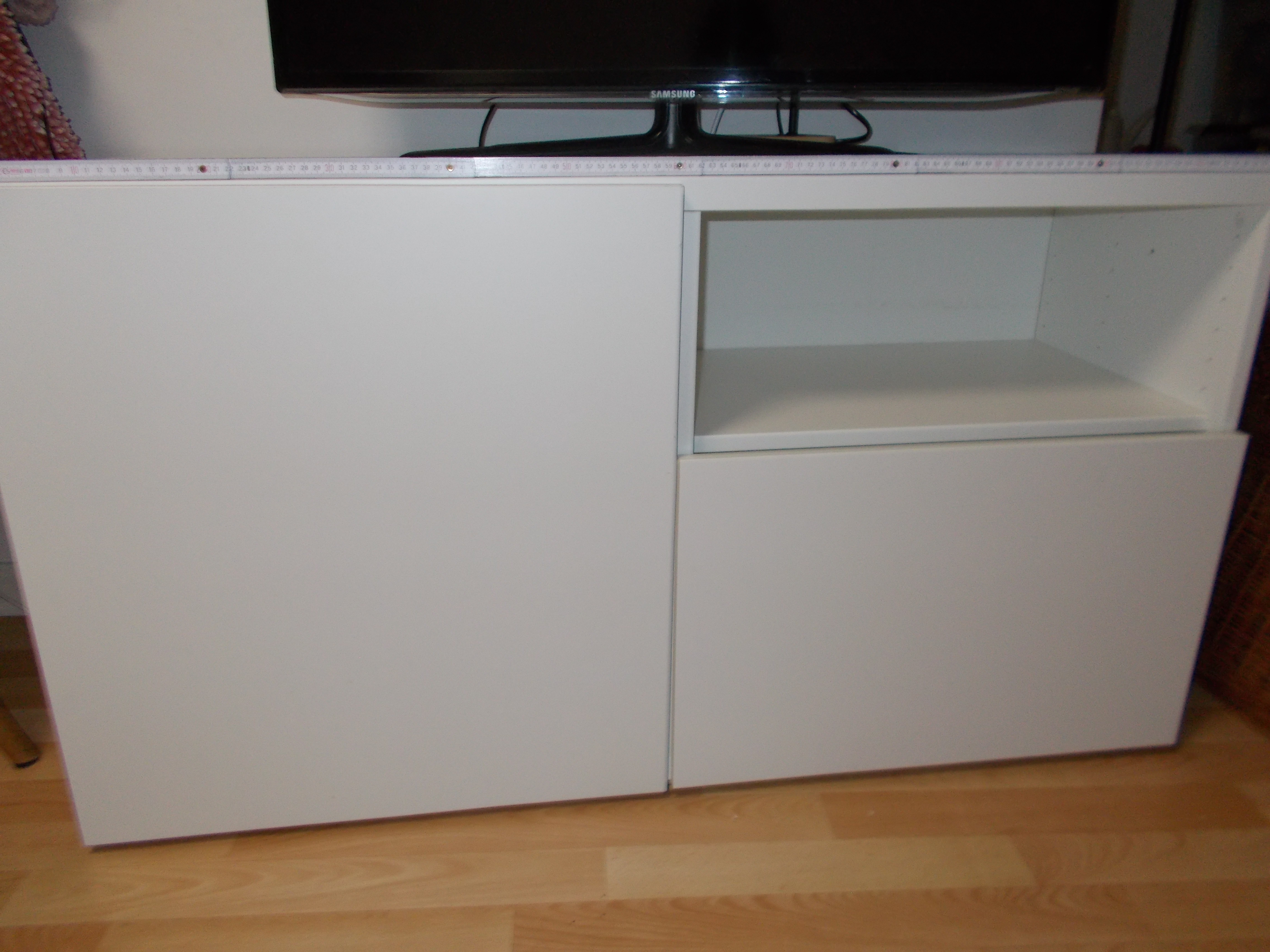 Besta Schrank bzw. Fernsehschrank (L=120 cm, B=41 cm, Hoch=65 cm) mit 2 Einlegeböden verstellbar, 1 große Tür, 1 kleine Tür