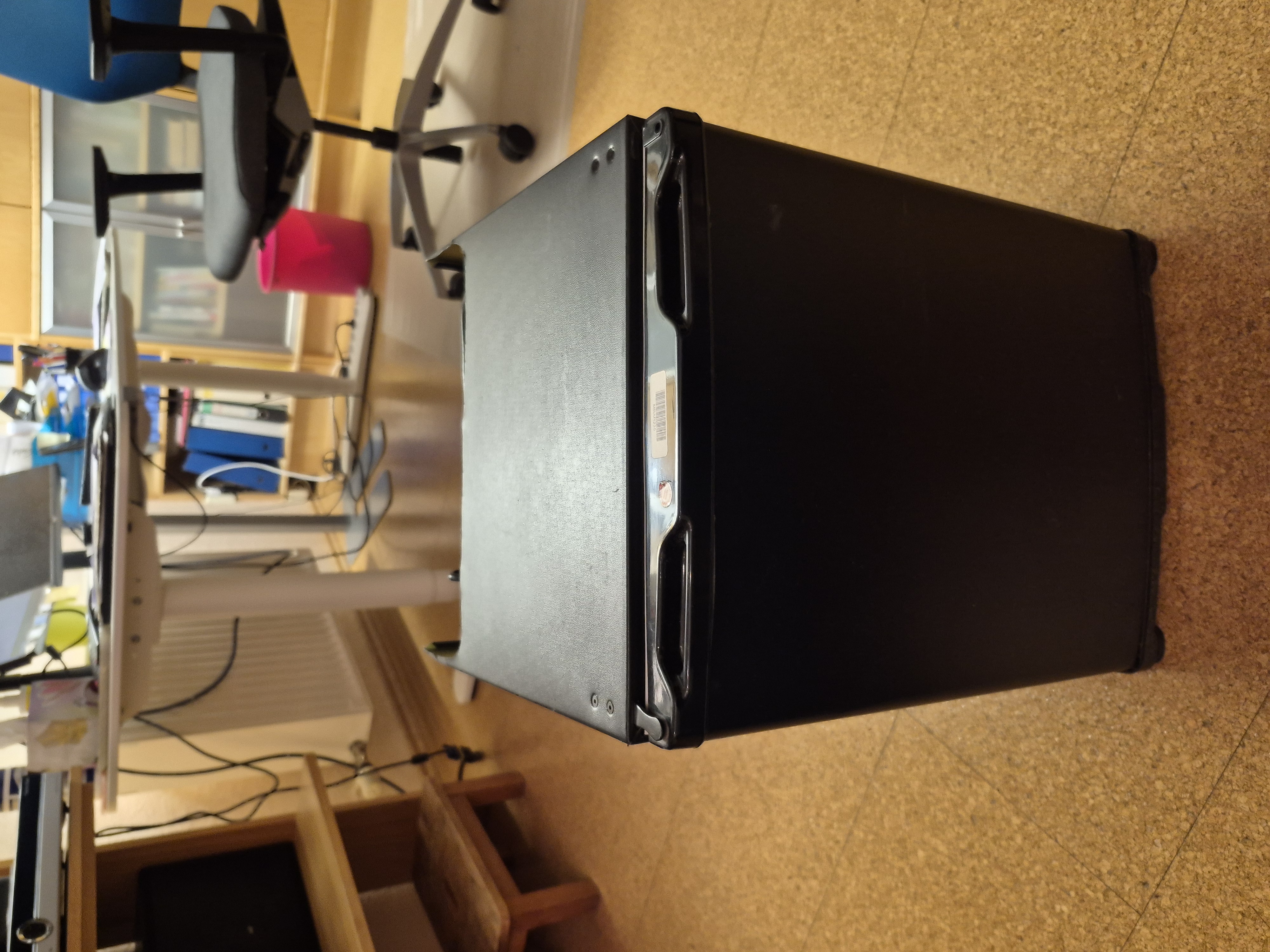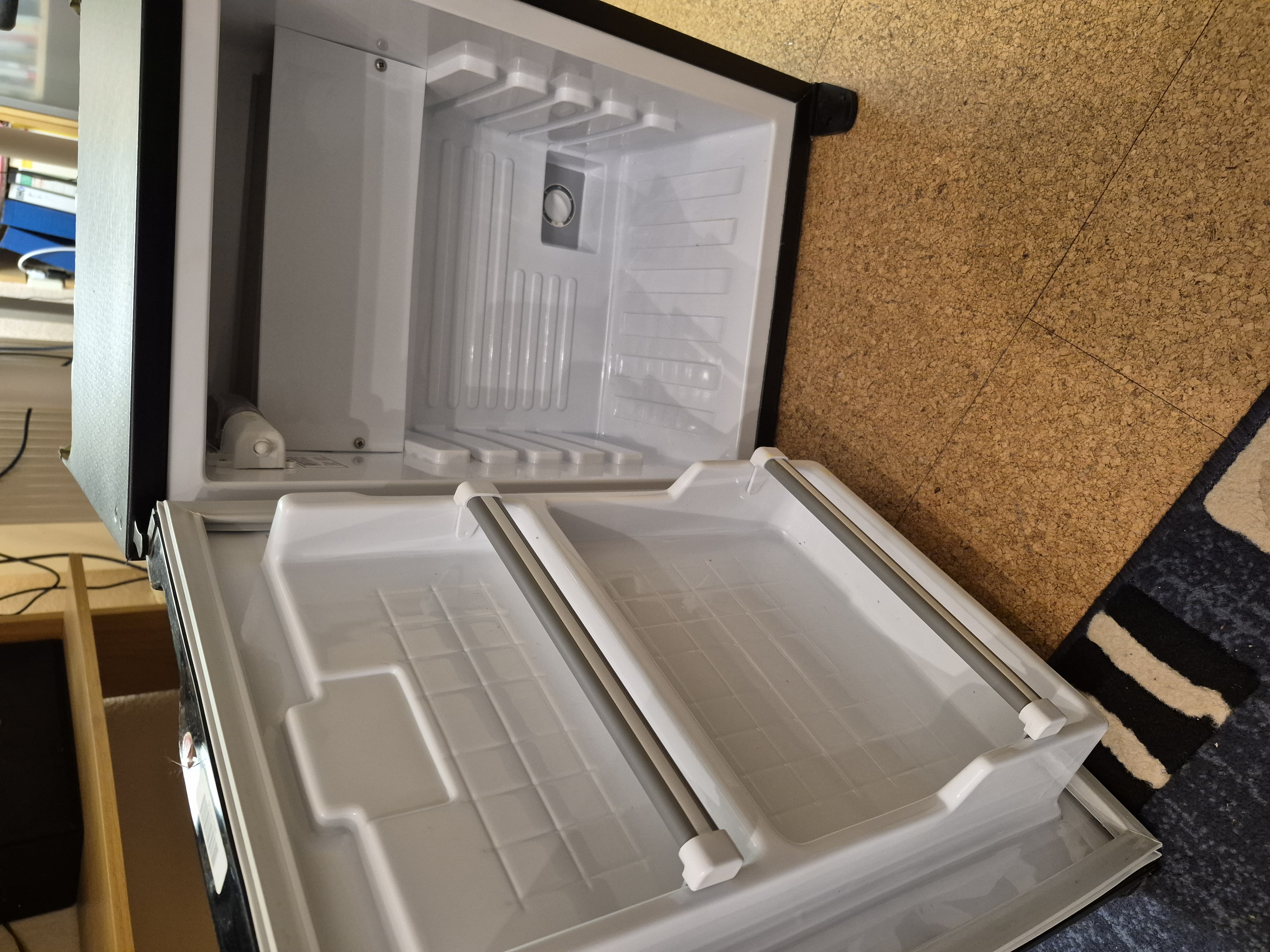 Kühlschrank wie in einer Minibar in einem Hotelzimmer eingebaut.