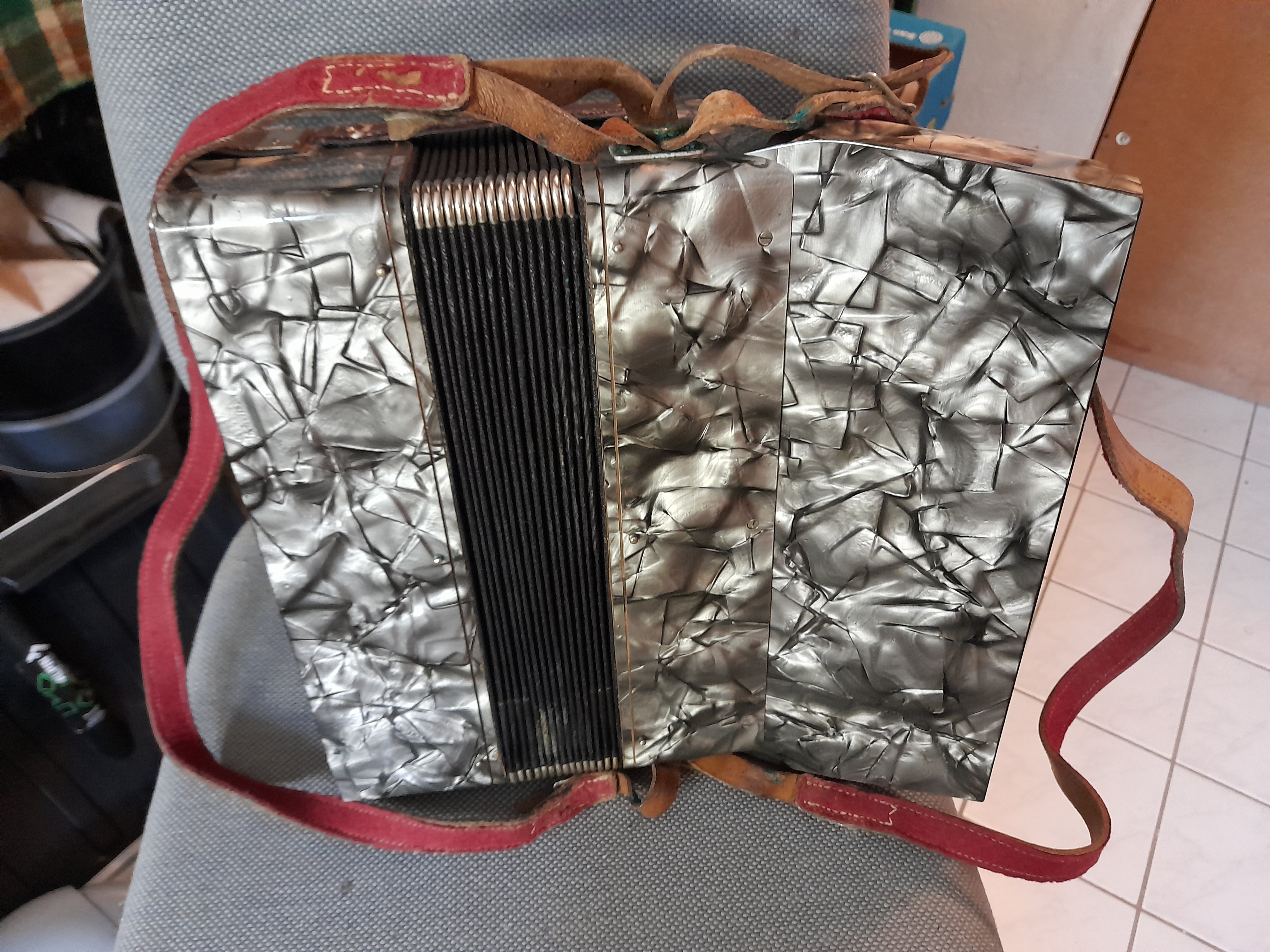 Ziehharmonika / Akkordeon mit Kasten (DDR, ca. 1960, nicht funktionstüchtig) als Ersatzteilspender oder für Deko-Zwecke für 15€ zu verkaufen. Das ist ein Privatverkauf. Der Verkauf erfolgt unter Ausschluss jeglicher Sachmängelhaftung. Nur Abholung, keine Rücknahme