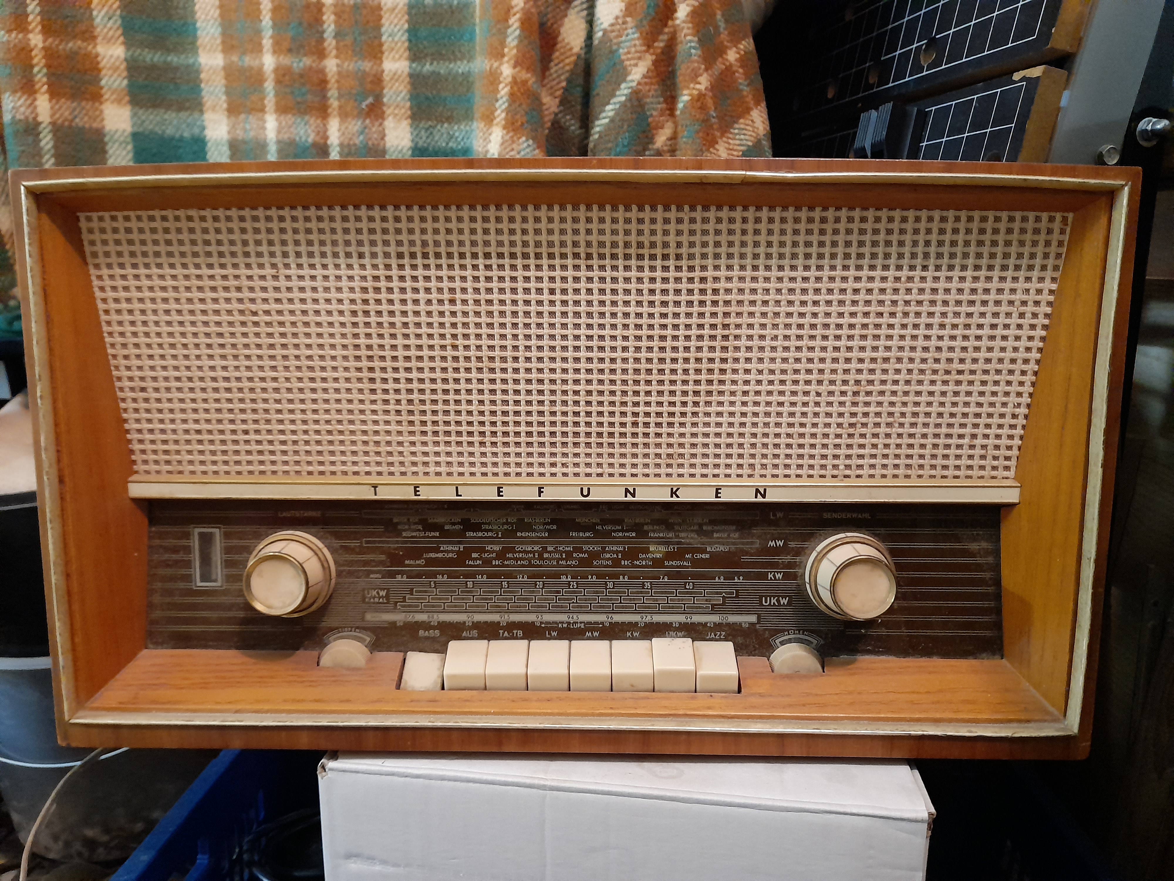 Nostalgisches Telefunken Röhrenradion (1960-er Jahre, Echtholz Nussbaum, ca. 52 x 31 x 23 cm) nicht funktionstüchtig als Ersatzteilspender oder für Deko-Zwecke für 20 € zu verkaufen.