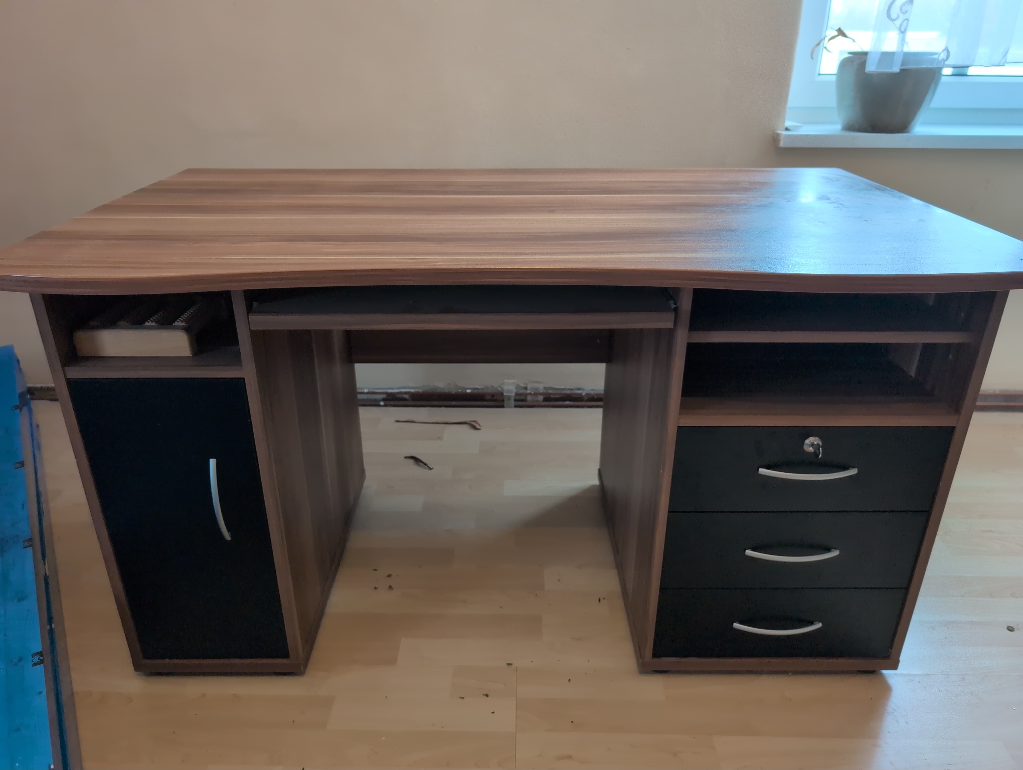 Schreibtisch mit einem verschließbaren Fach zu verschenken