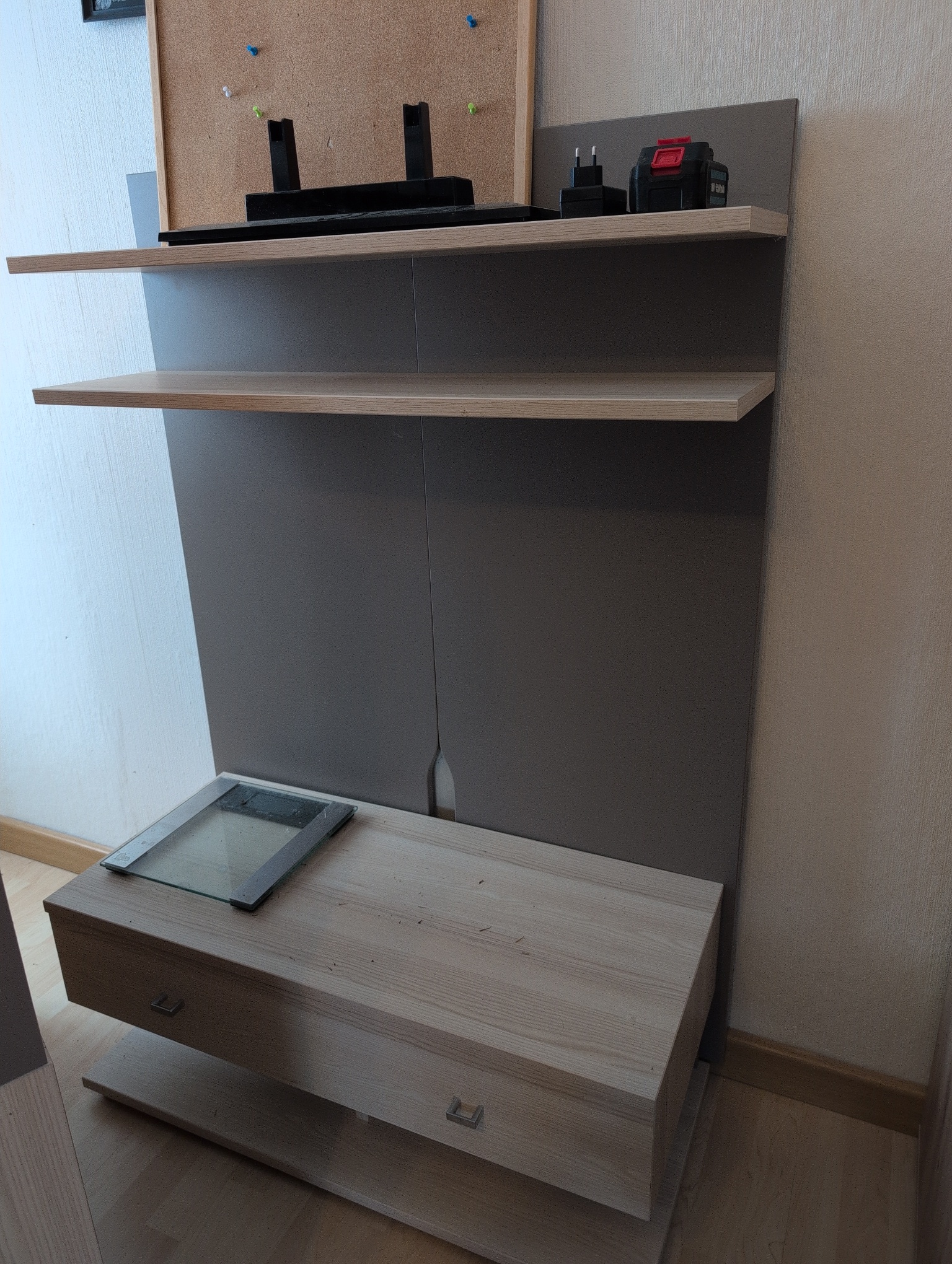 Schreibtisch, Fernsehschrank und Regal kostenlos abzugeben