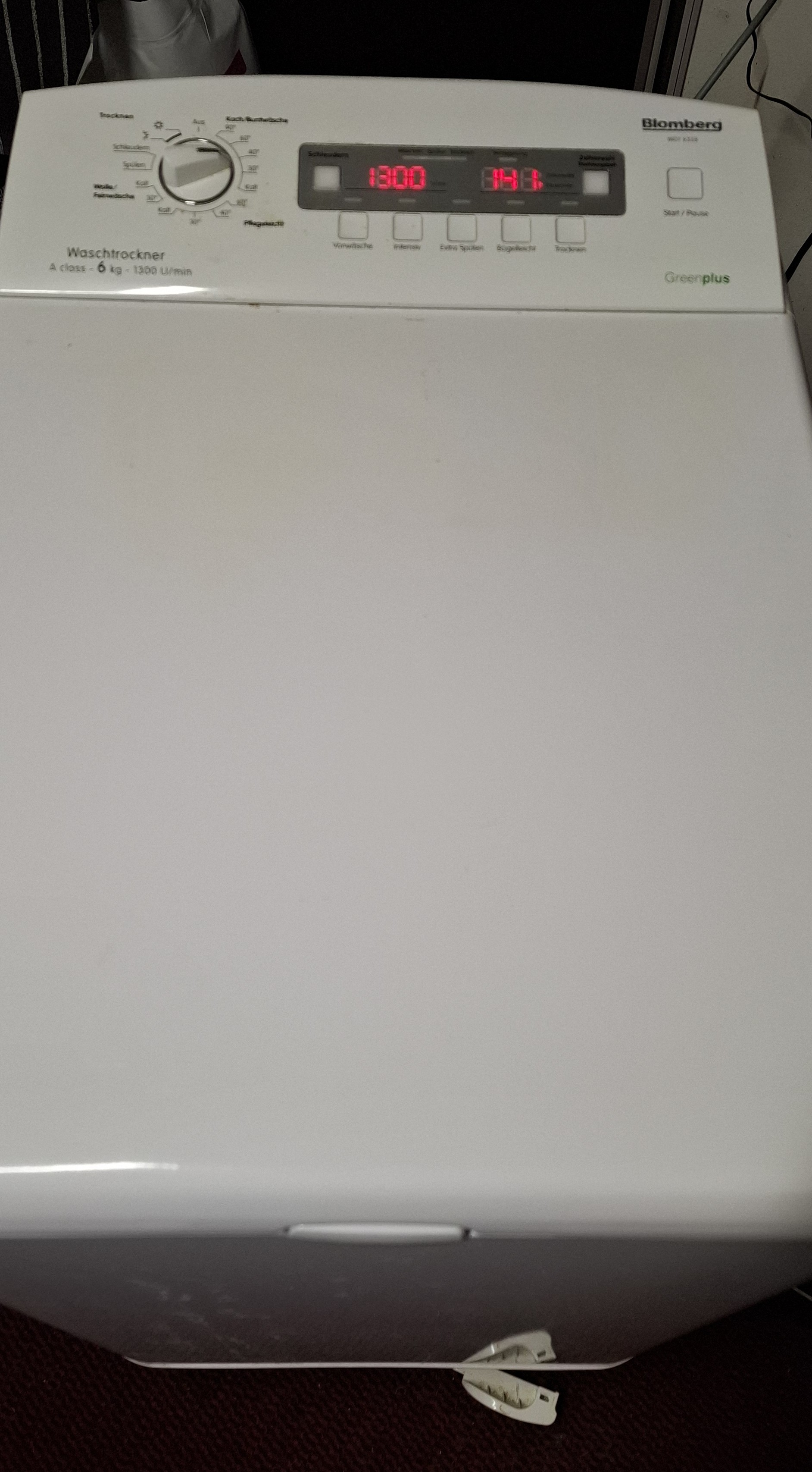 Sehr gut erhaltener, gepflegter, leistungsstarker, voll funktionsfähiger u.wenig benutzter Waschtrockner zu verkaufen. Füllmenge 6 kg -Waschmaschine u. 4 kg -Trockner. Toplader auf Rollen, Maße 45x60 cm. Energieeffizienzklasse D. Bedienungsanleitung, Kurzanleitung etc.vorhanden. Neupreis 810 €.