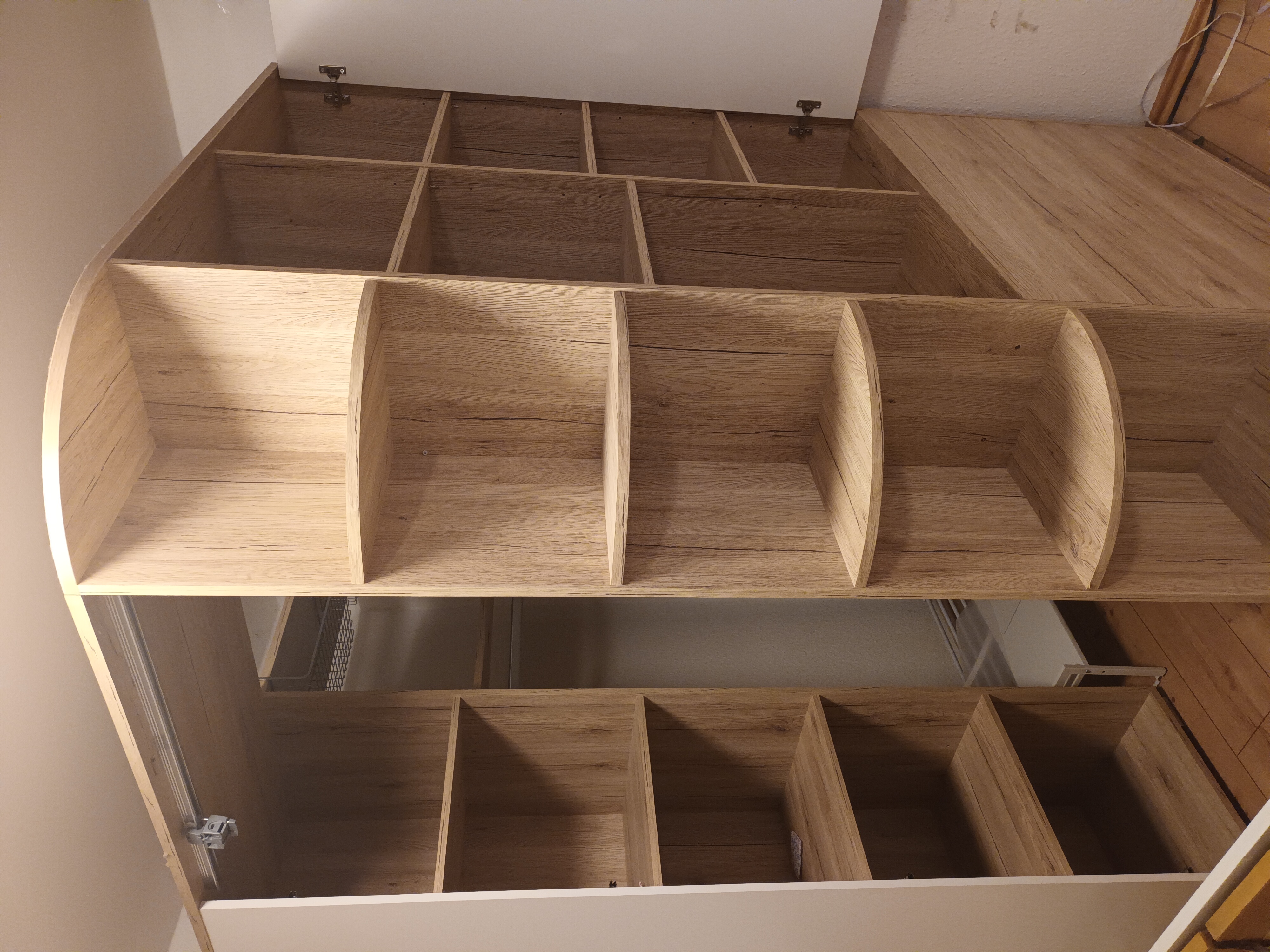 Die Küchenteile stehen bereits abgebaut in unserer Garage, eine neue Arbeitsplatte ist notwendig. Dazu gehörig ist ein funktionsfähiger Einbau-Kühlschrank.