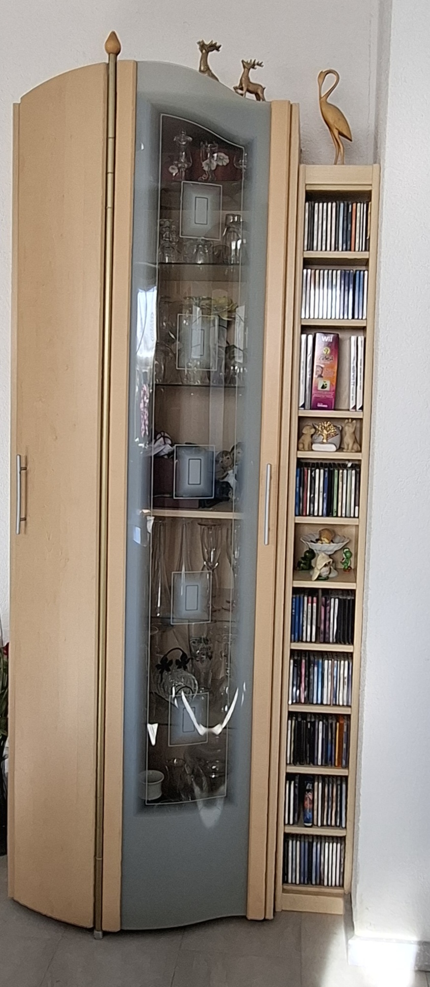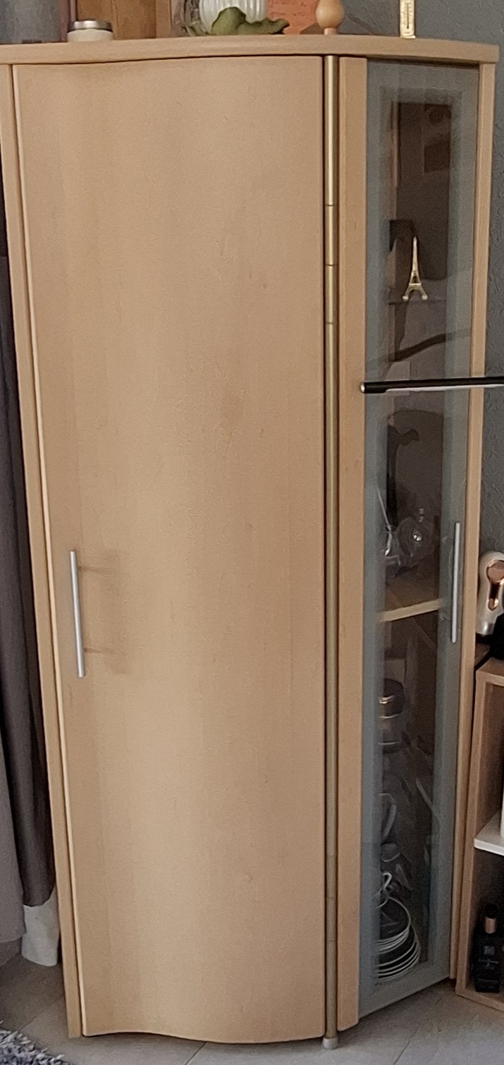 *kleine Vitrine, große Fächer links,71 B, 164 H, 46B,für 60€